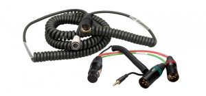 The 4.6 to 16.4’ HBS12HY7-35 7-Pin XLR Female to Dual 3-Pin XLR Male Coiled Breakaway Cable from Ambient Recording comes with a Y cable and is used with Wendt X4 4-Channel and Wendt X5 5-Channel Mixers. The signal returns via a TRS mini right angle plug on the coiled cord.